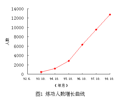 随着社会的发展,人们物质生活水平得到提高,对强身保健提出了更高的要求,我国一直在提倡全民健身运动。调查结果表明,学炼法轮功的人数逐年递增,而且增长迅猛,几乎呈直线上升趋势。法轮功拥有如此众多的修炼者,能被这么多的群众认识和接受,这也说明法轮功在祛病健身上确有实效。