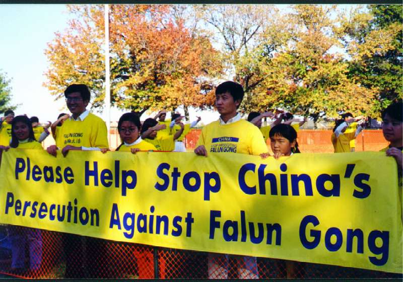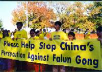 与周围喧闹的其他抗议团体对照,法轮功学员的诉求安静、平和而简洁有力。