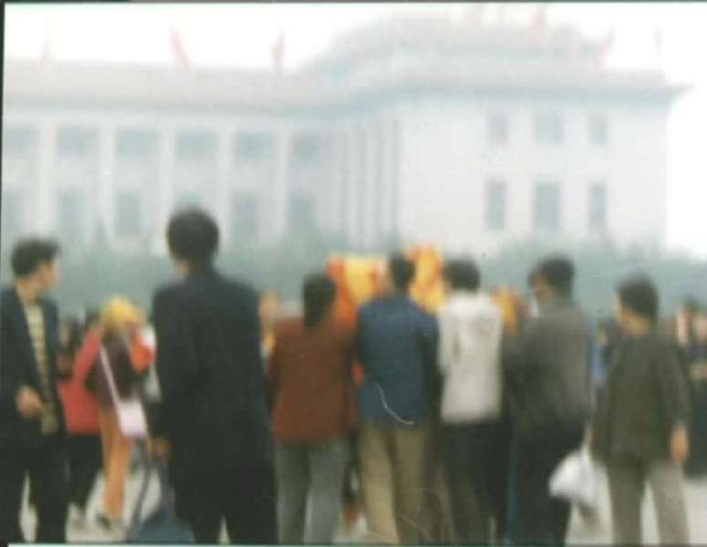 在天安门广场众多观光客惊愕目光注视下,北京的解放军和武警,一日上午至少逮捕了一千名法轮功学员,把他们连拖带拉的送上巴士和厢形车载走。