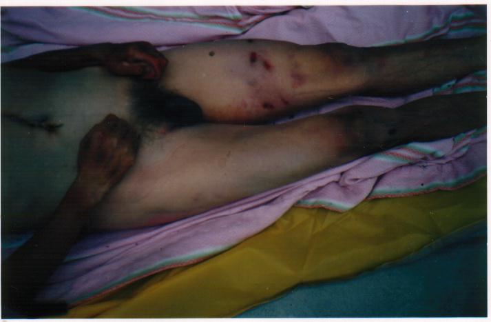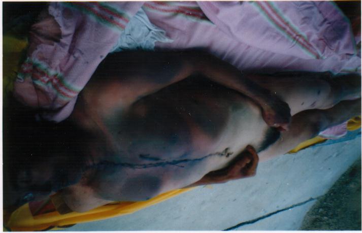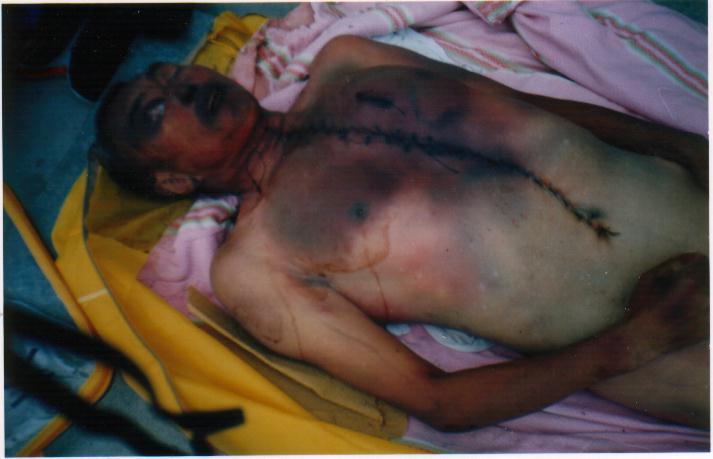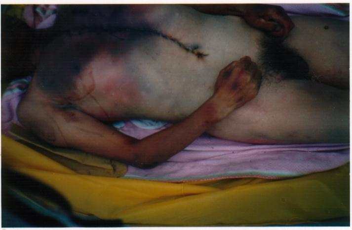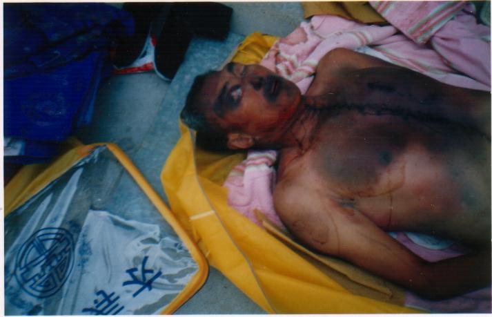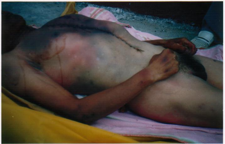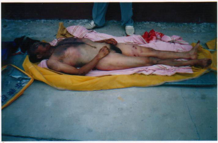 公安政府知法犯法,滥用酷刑对待一位手无寸铁的老人,令世人义愤填膺。据可靠人士透露,政府知己理亏,欲用6万元将此事私了。并将其老伴关押,对其家人严密看管和控制,以防消息透露。其子女委托一位律师打官司,后公安找这位律师“谈心”,遂后该律师放弃此官司。以下照片即为大法弟子刘玉风及被法医解剖后的照片。