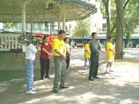 学员们在一个地势较高的亭子里一遍一遍地演示着大法五套功法,观看大法宣传板的游客络绎不绝,人们开始询问在中国发生了什么,主动索要大法资料,还有一些游客想学习大法。一位在阿拉莫从事旅游业的女士详细询问了大法在中国国内的情况,她说:“这(镇压)对我来说完全不能接受!人民应该有选择自己信仰的自由。你们真是应该让更多的人知道在中国发生的情况。我相信多数美国人民都是支持和同情你们的!你们可以去问一问这街上的游人,百分之八十的人都会支持你们的,中国政府的暴政人人皆知。我不懂为什么我们的政府会对他们的暴行谴责的程度不够。”还有一位老者问我们:“难道就因为一万人平和地向政府反映心声就遭到如此惨无人道的迫害吗?这是中国政府的耻辱!”学员们尽量珍惜每一个机会向公众介绍事实真相,给他人提供了解大法的机缘,尽管我们并没有主动要求签名,但是我们那张不起眼的签名纸上还是留下了游客们善良的关切:“停止屠杀!”、“保护人权!”等等。