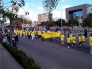 10日中午,美国学员凯文打电话来告诉我们这个游行的事。他也是刚听说就立即打电话去找主办单位─郡政府联系。主办单位一口答应了。因为时间已经很晚,大家立即分头通知。因为这个游行规模很大,我们马上和洛杉矶学员联系希望他们来些学员。