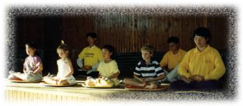 我们学员就给了她一个打坐垫,问她想不想坐下学习打坐静功,桑妮点点头,很肯定地说了声:“是”。我们於是就开始教她第五套功法,她认真地跟着学,从打手印一直到加持,并进入静功打坐,我们发现桑妮一下子就入定了,她是神态是那样的纯净,真是难以用语言来形容。我们坐在旁边也同时感受到了师父的慈悲和洪大的法力。差不多过了十五分钟,在我们学员的示意下,她才睁开了眼睛,看见小女孩这麽有缘,我们就把师父的教功录像带赠送给了她,同时给她的还有《法轮功》和《转法轮》,桑妮的母亲答应我们会将书送进图书馆,我们学员那时的心情……,深深感到,大法终於来到了这个乡村小镇。