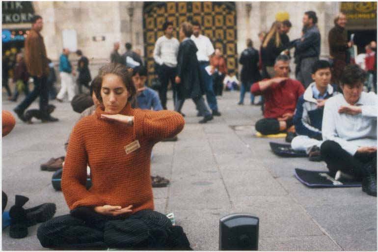 学员们宁静的炼功与展示板上江泽民一伙残忍迫害大法弟子的照片形成鲜明的对照,吸引了许多人的注意力。许多善良的德国人对江泽之氏的暴行表示愤慨。能感觉到许多从大陆来的中国人观念在变化,他们非常愿意接受介绍真象的材料。不由得想起老师曾在《和时间的对话》中讲“我还是想再等一等,看看把更微观的破坏人类的物质清理干净时,再看一看怎么样,再下决定。他们毕竟是来得法的。”在《去掉最后的执著》中老师又讲:“目前天体中的邪恶已被除尽,三界内也都被正完法,”慈悲的师父一直在等待着弟子们履行作为大法一真正粒子应尽的职责,等待着人们了解真象,等待着人们清醒过来。