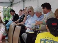 很多出席奥克兰竞选活动的民主党官员都注意到了台前穿黄T恤的学员.当克林顿总统上台时,他也很快注意到了我们醒目的学员.当他讲到”民权和人权”的主题时,他转向我们的学员,并示以微笑.