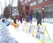 中国领馆前的加拿大弟子大雪中照常请愿