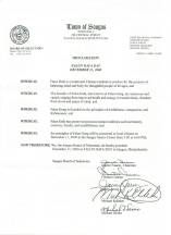 在此:我们,萨古斯镇管理委员会,宣布:2000年12月11日为麻萨诸塞州萨古斯镇“法轮大法日”。