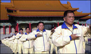 图:三千名法轮功学员齐集台湾集体练功声援大陆学员