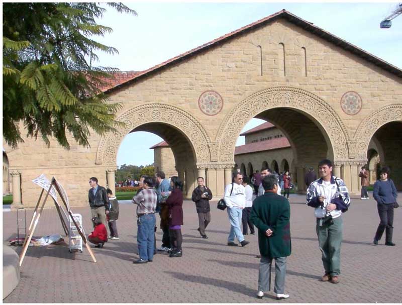 【明慧网2000年12月28日】圣诞节这一天,斯坦福大学主广场上,来来往往的人群川流不息。他们中大多是来观光旅游的,其中不乏大陆来的游客。当人们在这所世界著名学府的校园漫步时,意外地发现了十几幅醒目的法轮功图片介绍,不禁驻足。有的游人主动拿取图板旁边资料架上的报纸或散页。一天下来,在图板前留步的人不下七百人。