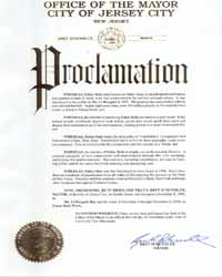 【明慧网2000年12月4日】 新泽西州泽西市市长Bret Schundler先生继于去年宣布1999年8月8日为泽西市“李洪志先生日”后,又于近日欣然宣布2000年12月4日为泽西市“李洪志先生日”和2000年12月4-8日为泽西市“法轮大法周”。
