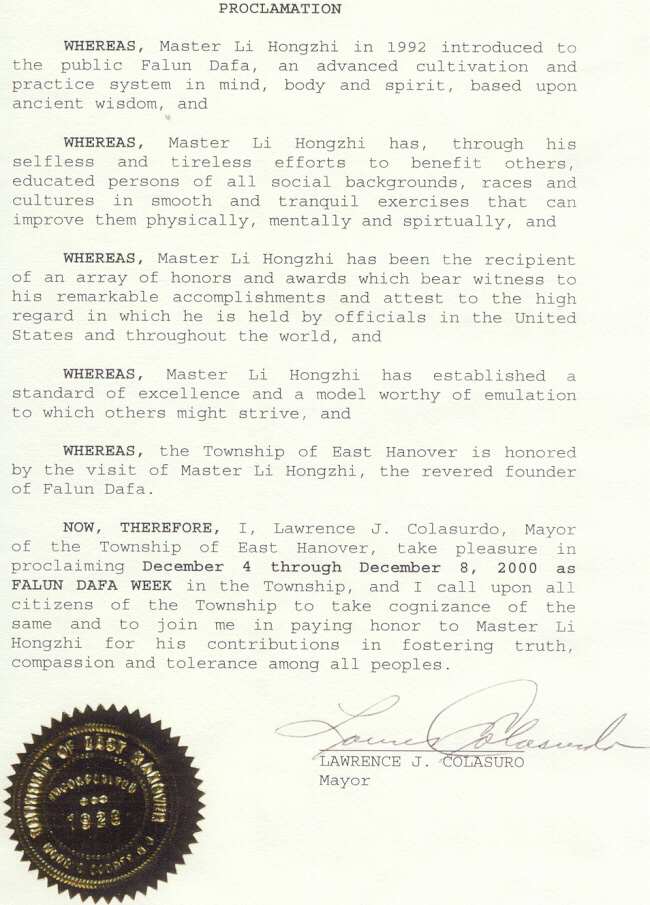 Lawrence Colasuro先生在“法轮大法周”的公告中还写道: