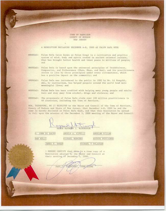 学员们的洪法炼功活动受到了社会各界的广泛注意。市长和市议员们都说,他们看到了学员们的集体炼功,并对此倍加赞赏。八十多岁高龄的首席议员迪隆沃先生曾经到炼功点和学员亲切交谈,并表示有机会也来学炼法轮功。目前,该市学员正与市政府商讨如何进一步将法轮大法介绍给更多的哈利森市人民。