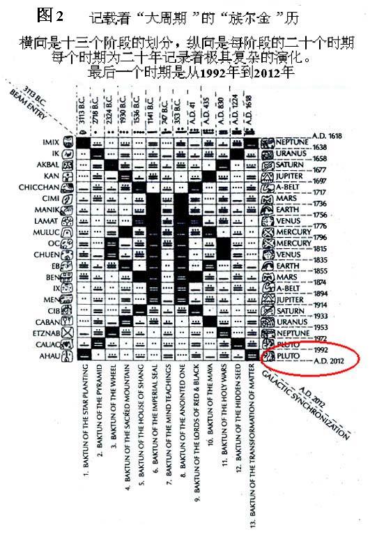 从图2中我们可以看到,从1992年到2012年这二十年的时期中,我们的地球已进入了“大周期”最后阶段的最后一个时期。玛雅人认为这是“同化银河系”前的一个十分重要的时期,他们称之为“地球更新期”(Earth Regeneration Period)。在这个时期中地球要完全达到净化(Earth Purification)。而“地球更新期”过后地球将走出银河射线的范围而进入“同化银河系”的新阶段。何西博士还结合中国的《周易》和遗传密码等理论从不同角度上用了非常复杂的手法来探讨、解释这一天象所给与人类的启示。