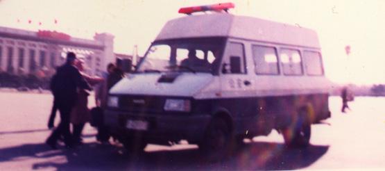 【明慧网2000年2月7日】 1月30日星期天上午11:30左右,天安门广场上有比以往日更多的警察和便衣。有两位功友打出了法轮旗。有一位中年的男功友在天安门中间靠近纪念碑一侧做头前抱轮;不到10秒钟立即有一辆警车开来,将他带上了车。(2000年2月7日稿)