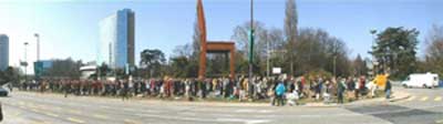 【明慧网2000年3月27日】3月20日,来自世界各地900百多名法轮功学员在联合国大门前集体炼功。