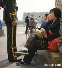 伪装成游客的警察在天安门广场不断盘问并逮捕法轮功学员