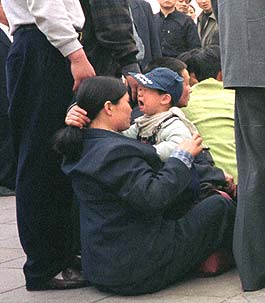 4.25上午在天安门广场上的警察几乎都是穿着便衣,没有几个穿制服的。4.25上午9点30分到10点30分,广场上的法轮功学员见到有200多名其他大法弟子在天安门被抓,抓他们的人都是便衣,行动特别隐蔽。便衣问清是大法弟子后,马上上来几个人把学员围住,然后用对讲机把停在附近的警车叫来,推上车就走了,行动特别快,表面甚至看不出来,看出经验后才看到:只要警车一动,顺着警车看,肯定就会发现便衣警察在抓人。