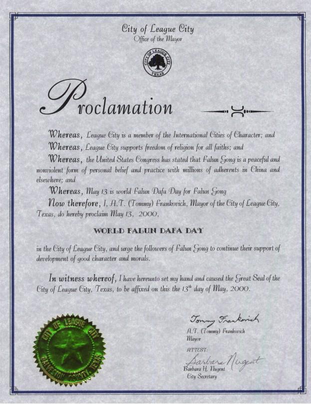 故而现在,汤米.弗兰克维切作为德克萨斯州里戈市市长特此公告2000年5月13日为里戈市