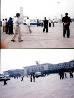 至8:10左右,又增派了几辆依维柯(Iveko)和其它型号的警车来到广场,总数已达十五辆,与周围的环境很不相称。但游人似乎并不察觉。时至8:30又有新来的警车前来增援,这时警车总数已是二十七辆。广场北侧、国旗附近总有三至四辆依维柯轮番慢速巡查,伺机而动。广场中也有很多手持步话机的警察四处巡查,有些身着警服,另一些则穿着便服。