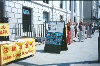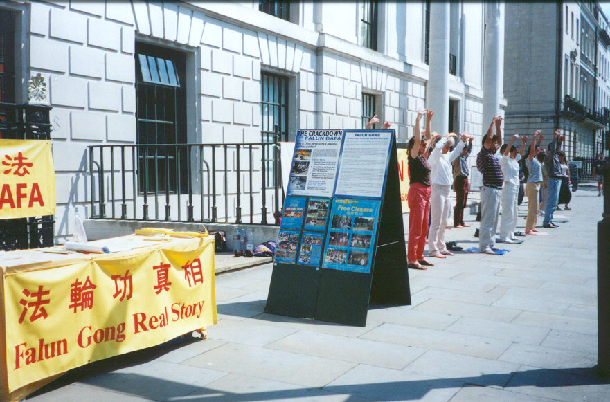 在中国政府镇压法轮功一周年之际,英国学员在伦敦举行为时三天的洪法活动。7月20日在国会大厦(大本钟)前,21日在中国大使对面,22日在中国城。利用这一时机向公众介绍法轮功真象,向有缘人洪传大法,同时揭露中国政府镇压和迫害法轮功学员的种种残暴罪行- 让天下人(包括中国政府官员)了解真象。