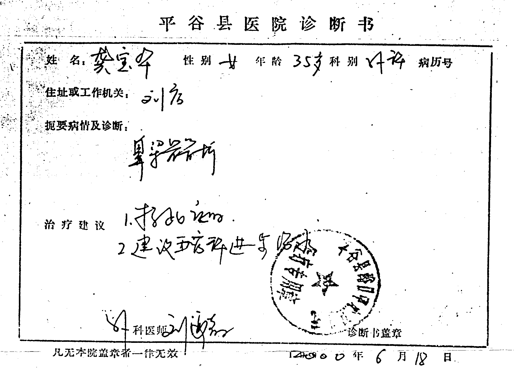 北京市平谷县刘店乡刘店村法轮功修炼者龚宝华(女,35岁)六月十七日去北京信访部门反映法轮功真实情况,在东直门长途汽车站与其他七位功友被警察拦截押回乡派出所后,其中六人惨遭公安干警的殴打,龚宝华被打最重,后经峪口卫生院拍片检查证明,她的鼻梁骨被打折,(见诊断书)。当地乡亲及亲属要求让龚宝华回家养伤,但派出所惧怕群众愤怒,为掩盖事实真相,遂将龚宝华等人送进县看守所。十九日又将部分到县有关部门反映情况的法轮功修炼者抓迸县看守所。龚宝华等人在没有办法的情况下,只好以绝食的方式证明自己的无辜,用生命证明自己的清白。