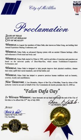 鉴于,法轮大法帮助人们保留珍贵的人类传统,比如诚实,礼貌,忠诚和无私;