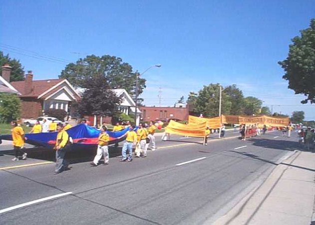 下午3时左右,约90名学员又跋涉40多公里赶到NORTH YORK的公园参加下午的游行。早在1998年的类似游行中,法轮功学员就给举办者留下了深刻而美好的印象。这次,游行队伍里一半是法轮功学员,仿佛这次游行是为法轮功而举办的。