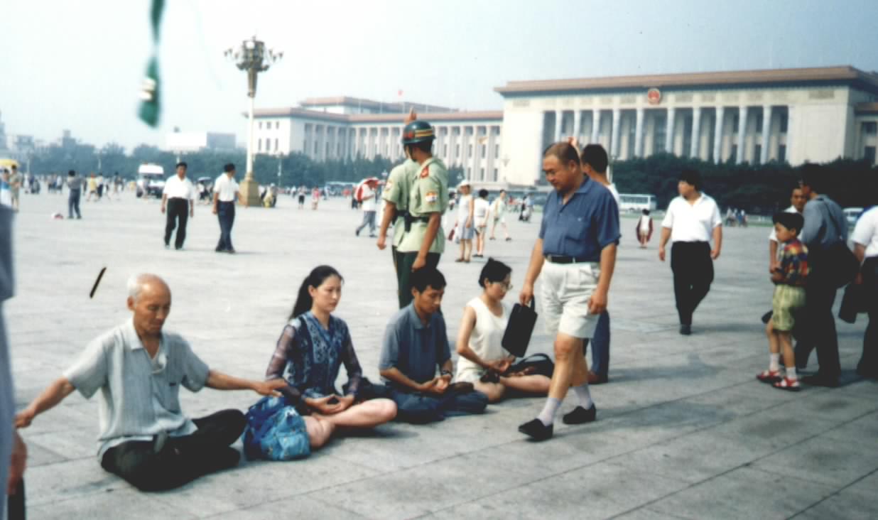 连续两天的大暴雨过后,7月6日的天安门广场的显得游人比平时多了许多。今天,来自全国各地的法轮功学员,用他们各自悟到的方式来维护和证实大法。他们以祥和对待恐怖,又一次在这世界上最大的广场上演绎了一场大善与大恶的鲜明对照。