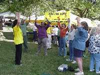 一位美国人前几天打电话说看到法轮功报纸后很愿意进一步了解法轮功。我们告诉他星期六的活动后,他早早地来到我们的展位,并马上学习五套功法。问了很多问题。当听说法轮大法是性命双修的功法后,他非常兴奋,并告诉我们这就是他一直要找的功法。虽然他学其它气功许多年,但没有一个满意的。这位有缘人在我们展位前流连忘返。几次回来与学员交谈。他说如果不是腰有毛病,他马上会加入我们的炼功队伍。带着<<法轮功>>,他满意地走了,还表示一定要来参加我们将在图书馆举办的介绍班。