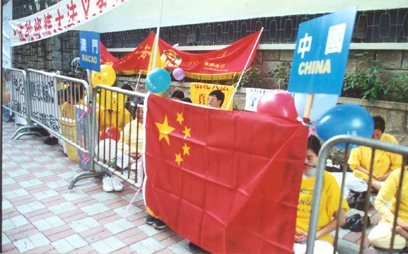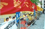 13日下午,学员们游行至中联办(前新华社)递交请愿信 在前新华社对面的炼功