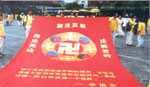 游行前鲜艳的大法轮旗