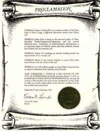 伊利诺伊州沃伦维尔市宣布“李洪志大师日”