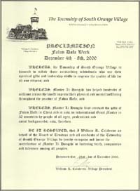 特做出如下决议:我,William Calabrese,代表南桔市市政会及南桔市全体市民表彰李洪志大师在各族人民中倡导“真善忍”而做出的贡献。