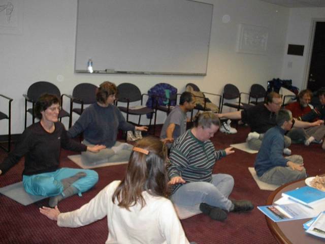 【明慧网2001年1月8日】 我们是俄勒冈州大法学员,为了跟上师父的正法进程,助师世间行,我们以不同的形式走出来证实法并向世人。我们利用每个周末在不同城市举办法轮大法讲座。在Corvallis市的一次洪法讲座中,一位五十多岁的美国妇女来到教功场所说她是一位太极练习者,她有一个儿子在中国四川工作,她们母子对中国的传统文化都很感兴趣,她的儿子在书信和电话中跟她谈了很多关于法轮功的事,而她在中国的儿子也无法帮她得到资料。她说她今天很幸运,终于在家门口见到法轮功了,并说一定要修炼法轮大法。临走时她问我们:你们能多给我一份资料吗?我要寄给在中国的儿子,虽然他身在中国但他得不到资料,我要马上告诉他我已经在美国找到法轮功了。我们真切地感到还有很多有缘人尚未得法,要做的洪法工作还有许多。此次的大法讲座及教功非常成功。大家学的很认真,并看了法轮功真相幻灯片。他们表示很想知道中国到底发生了什么。学员们给他们介绍了修炼法轮大法后自己及家庭发生的巨大变化。场面真诚而感人。有的人当场买了教功录像带。现在这个城市已建起了集体练功点。以下为此次洪法中拍到的照片。