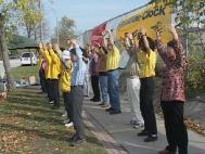 下午1:00左右,伴随着学员们的集体炼功,活动正式开始。来自当地的媒体《渥太华太阳报》,《渥太华公民报》,加拿大电视台CTV, 当地电视台NEW RO,以及一家法语报纸le Doir和法语电台Radio Canada对活动进行了采访。