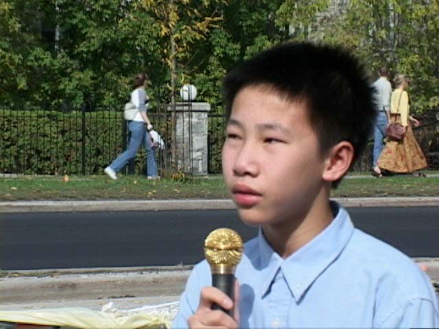 | 曾与母亲一起静坐两周的12岁蒙特利尔学员。 | 抱轮 |
