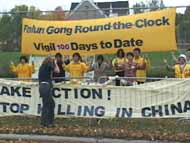 从今天起,我们将24小时的静坐改为白天静坐。我们将面临渥太华寒冷天气的考验,但是,学员对大法的信念坚如磐石:只要镇压一天不停止,我们就一天也不会离开的。