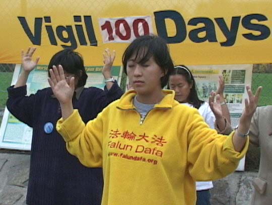 在过去100天里,学员在大使馆前接受了近50人次记者的采访,发放了上万份中、英文法轮功的真相材料。每天在使馆前经过的数千车辆、100天内从国内来的数十车代表团游人、参加大使馆组织十余次活动的各界来访者,在此见证了法轮功的真相及和平的呼吁。