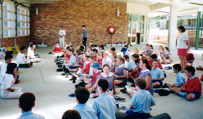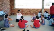 一所小学的女校长邀请步行学员们去参观他们的学校并向小朋友们介绍法轮功。媒体也来了采访。学校里的每个人都那么欢迎我们,在内心深处,他们每个人都感到这些法轮大法学员与众不同,令人钦佩。他们用银盘子装满了水果来招待我们,象招待贵宾一样。女教师为小朋友们介绍了法轮功,遵循真善忍的道理,讲述了我们的步行,她告诉小朋友们法轮功这样祥和的功法在中国却被打压,修炼者为此要被抓、被关、被打甚至于失去生命,世界上还有这样不公正的事情正在发生着。然后,我们展示了五套功法。每个人都跟着学了起来。一个小女孩告诉我们,当她闭上眼睛炼习第三套功法时,她看见另一个自己也在炼功。
