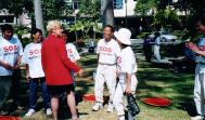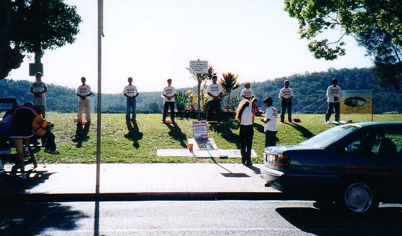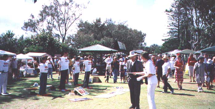 当我们走过TWEED HEAD这个小镇的时候,正好遇上当地的一个节庆日,有很多的展位,很多的居民和游人。当我们和管理人员联系后,他们马上同意我们在最中心的地方展示功法和介绍法轮功。优美的功法吸引了所有的人,连小朋友也学了起来。几乎每个人都得到了一分大法的传单。