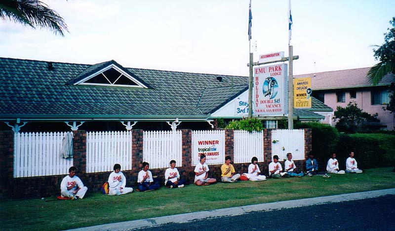 九月初开始到辅导员家中参加「九天集体学法炼功班」,聆听师父在广州的讲法,这几天听法期间我陆续感受到大法的威力:包括开天目的感觉,回家后上吐下泻,且有一股热流一直在背部多年的旧伤部位来回地流动。有一天上班期间甚至感到整个脑袋胀得快要爆炸,四肢酸痛无力,快撑不下去了,但一想到这都是师父洪大的慈悲在替每位真心修炼的弟子清理身体,内心感到实在无以回报,更应该坚持听完九天讲法;期间辅导员说有「SOS紧急声援步行活动」及「澳洲亚太法会」,我便毅然决然地加入证实大法的行列。然而妻子却实在无法理解我为何会有如此巨大的转变,尤其是澳洲之行,但我都一再遵守师父所说要我们提高自己心性,矛盾来了要向内找,若是以前我的脾气,我俩可能早已闹翻天了,但我都一直心平气和地与妻子沟通,最后她让我参加了。这段期间我已开始每天早晨去炼功点炼功,双盘也从10分钟、20分钟、半小时慢慢地进步到炼完一小时,虽然非常疼痛,痛到心底,但我都坚持一定要做完五套功法,而且想到大陆弟子为了维护“真、善、忍”都可以放下生死证实大法,我们这些个人修炼的苦又算什么。