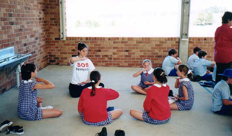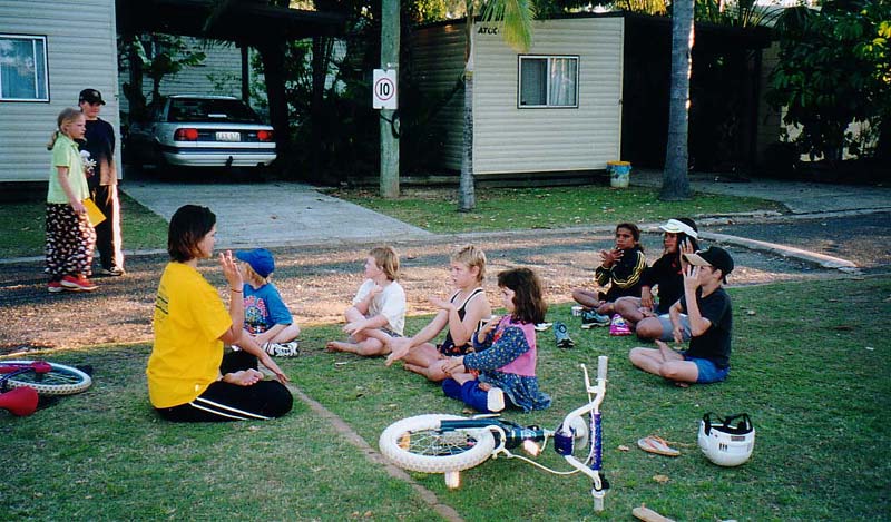 凯特.道格拉斯(Kate Douglas):“当我到达当晚的宿营地时,我感到特别的疲劳,就坐下来打坐炼功。我还能听到身边有孩子们跑来跑去地玩耍。可当我睁开眼睛时,我看见八个孩子对着我,盘坐着等我炼完功。这些孩子看起来很穷,穿着也有些脏兮兮的,可他们看起来非常清楚地知道我在做什么,而且真的想学炼功。他们还这么小,就已经能感受到大法的美好与圣洁。令人惊奇的是有三个女孩子与我一起呆了一个半小时,并做完了全部五套功法,直到天黑了下来。其他的孩子叫着,闹着,开她们的玩笑,想分散她们的注意力。可她们仍坚持坐在那里。晚餐已经准备好了,而我也已经又累又饿,但我知道,为了这些孩子,我必须坚持,我不能就这样离开。我必须留在那里直到炼完功,这是我能送给她们的最好的礼物。”