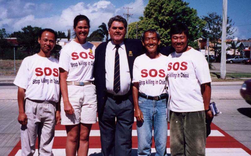 COFFS HABOUR市的市长亲自前来看望步行弟子,给法轮功弟子加油。