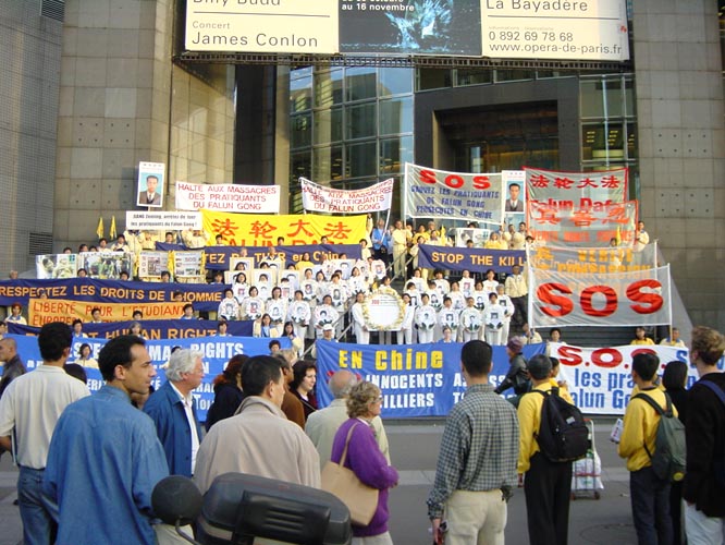 | 巴士底广场:呼吁国际社会紧急援救横遭迫害的法轮功学员 | 铁塔:烛光守夜悼念被江泽民集团虐杀的中国法轮功学员 |