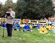 “我们会集在这里,(再)一次呼吁中国政府停止迫害法轮功学员的骇人听闻的暴行。”