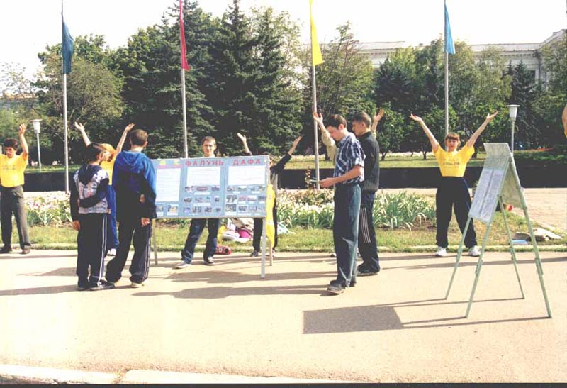 有一次,一个骑车的人拿走了一张传单。后来,当我们坐下休息时,那个人带了一些食物和饮料回来。我们告诉他这场迫害,他深表同情。