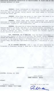 为此,新泽西州克里夫顿市市长和市议会强烈抗议和反对对法轮功及中国法轮功学员的镇压和迫害;呼吁释放已经被关押很长一段时间的滕春燕医生。