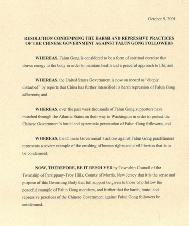 鉴于,为了抗议中国政府残酷和系统性地迫害法轮功追随者,数千的法轮功支持者沿着美国大西洋沿岸各州行进到华盛顿特区,并且,