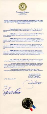 2、签发后的本决议文本送交参加2001年10月25日市议会大会的法轮功学员代表。