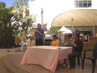 首先是对步行弟子的欢迎仪式,当6名步行弟子走进会场时,受到全场人们热烈的鼓掌欢迎。每个步行弟子被发给漂亮彩带佩戴胸前。西人女弟子阿曼达热情地与每个人拥抱,亲切问候。弟子们感动得热泪盈眶。